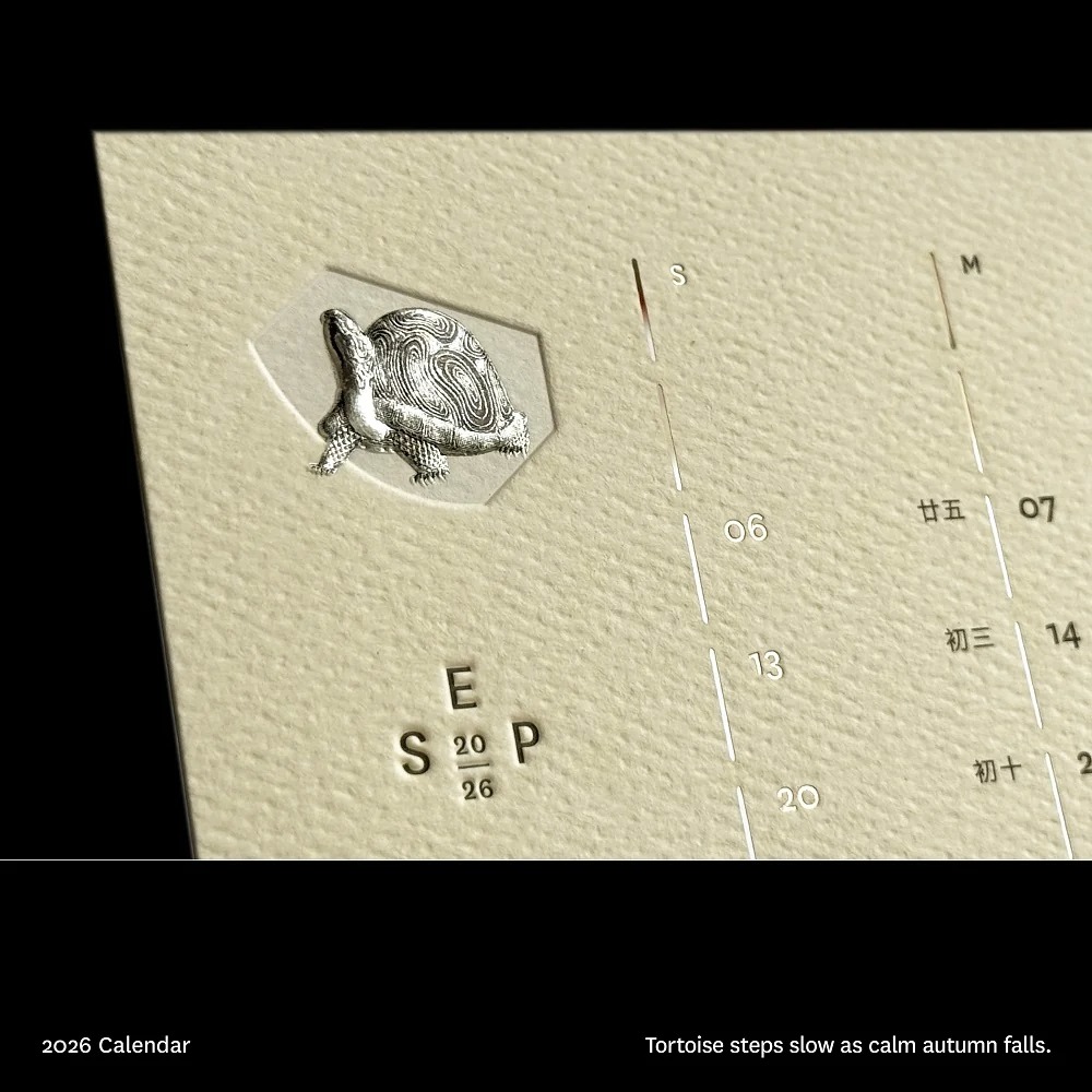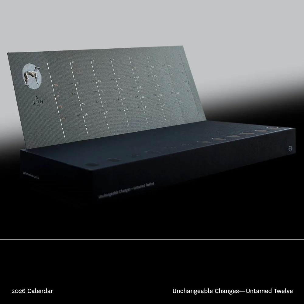 本地紙品設計品牌Papermoment,一向專注高品質的印刷技術,呈現工藝師深思構想的紙本藝術。今年推出4款顏色的月曆,每月以不同動物及象徵性的自然變化為題,表達時間是永恆不變,可萬物每時每刻在變的訊息。