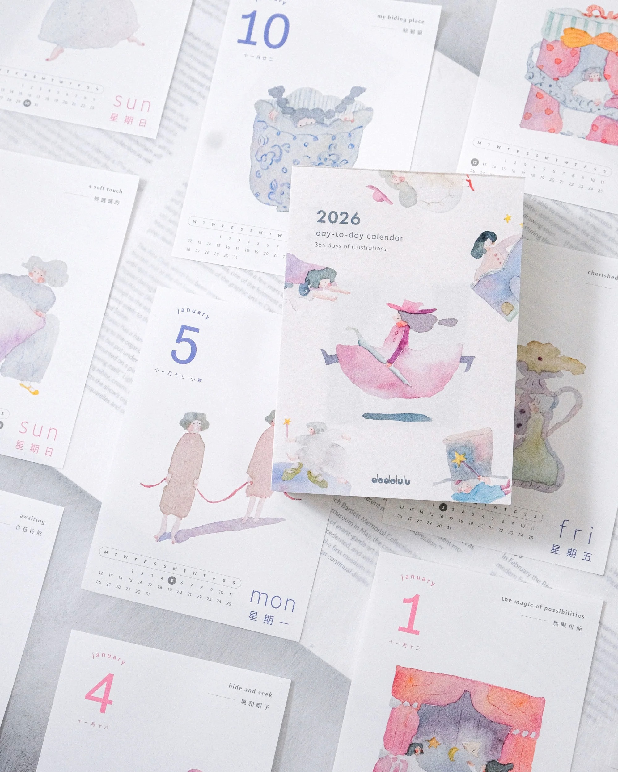 療癒少女風插畫家dodolulu,不斷從對生命的感受中汲取靈感,畫下那些感動的小瞬間,無論是快樂或悲傷,她都希望讓那些有同樣感受的人知道,其實你並不孤單。今年以「不期而遇」為題,推出「365女孩日曆」,每天不僅有可愛少女的身影陪著你,還有每一日語為你打氣。另設有掛座月曆、紙膠帶和手帳。所有產品均由英國印刷及寄出。