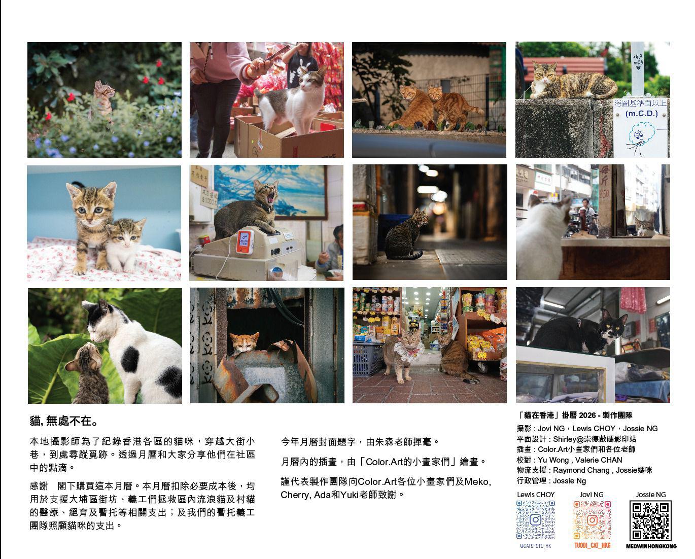 2020年成立的「貓在香港」由幾位大埔街坊組成,幫助大埔區內的流浪貓。但面對昂貴的開支,加上他們打從一開始便拒收任何捐款,曾一度找家中不重要的東西變賣換來診金。後來想到在區內拍攝不同的浪浪,而推出「大步貓」兩用掛、座曆,並於本地印刷製作,着重紙質、色彩及燙金效果的質素。而組織會扣除月曆所有開支和成本後,所得金額全數用於支援大埔區街坊 、義工們拯救區內流浪貓及村貓的醫療、絕育及暫托等相關支出,以及暫托義工團隊照顧貓咪的支出。