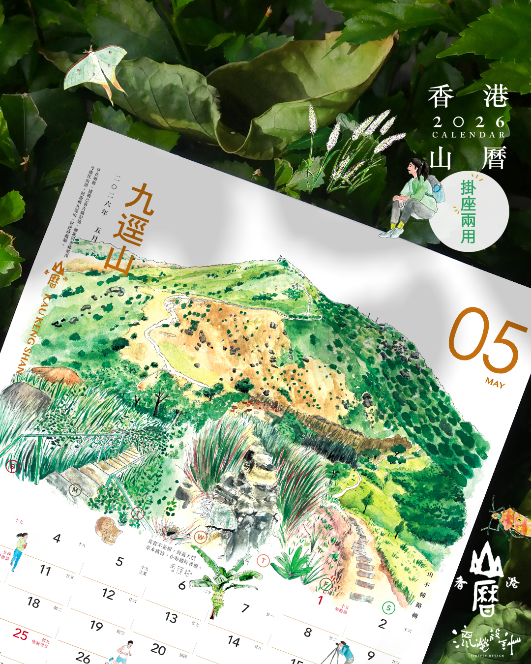 本地設計品牌「流螢設計」創辦人天翔自小在鄉郊長大,加上他醉心藝術,喜歡繪畫山上風景及動植物,並記錄每座山的獨特性。香港雖小,但原來也有二百多座山,為了讓更多人認識香港山嶺,他在2022年首度推出《香港山曆》,當中不乏獅子山、鳳凰山、大老山等。今年更繪畫全新12座山,推出《香港山曆2026》掛座兩用($220),插圖方面有九逕山、紫羅蘭山、太墩、禾秧山、破邊洲等,預計11月14日開始預售,喜歡大自然的朋友唔好錯過了。
