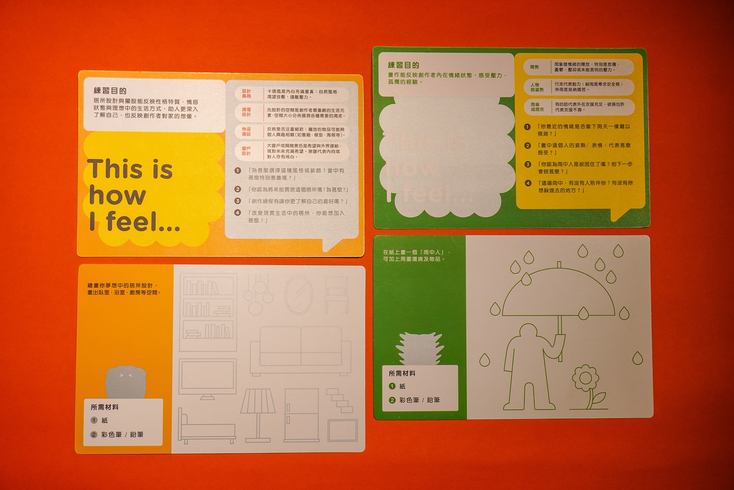 還有更多問題與回應待大家逐張翻開。遊戲盒內還有一疊「心事練習卡」,讓不擅長在人前傾訴心聲的學生,也可以利用卡上簡單的藝術創作表達內心。