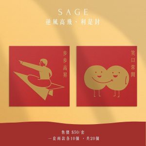 本地茶葉品牌Sage今次推出兩套四款利是封,用色和諧,款式亦簡約而不失趣味。他們希望大家在瘋狂的世界裡,能夠毋忘初心,抱緊共同信念,勇敢地往逆風的方向飛翔。Sage亦會將收益扣除成本捐贈612人道支援基金。