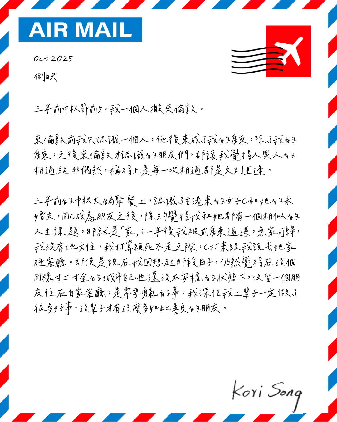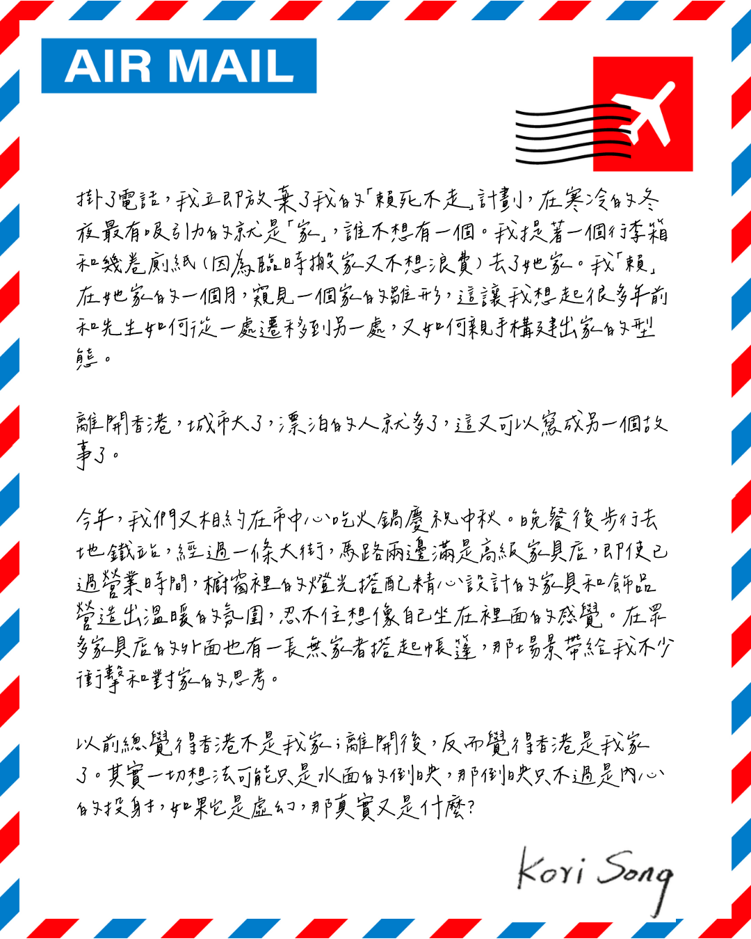 離開香港,城市大了,漂泊的人就多了,這又可以寫成另一個故事了。
