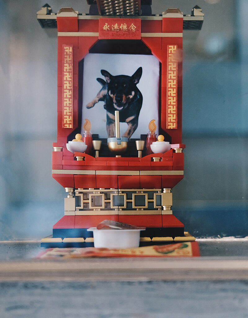 直至今日,大耳走了,卻一直從未離開。殯儀館入口安放著他的靈位,前方是一小顆牛油——那是大耳生前最愛的食物。