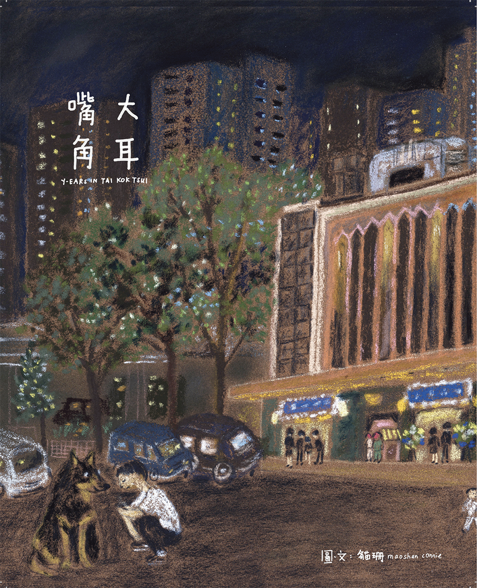 今年比較特別的,是繪本《大耳嘴角》的原畫展覽,繪本作家貓珊的創作,重塑一頭社區狗的故事:「大耳」是九龍殯儀館附屬花店收養的唐狗,於對面大廈出生,由BB開始便以殯儀館的正門為家,一住14年,渡過了一生。