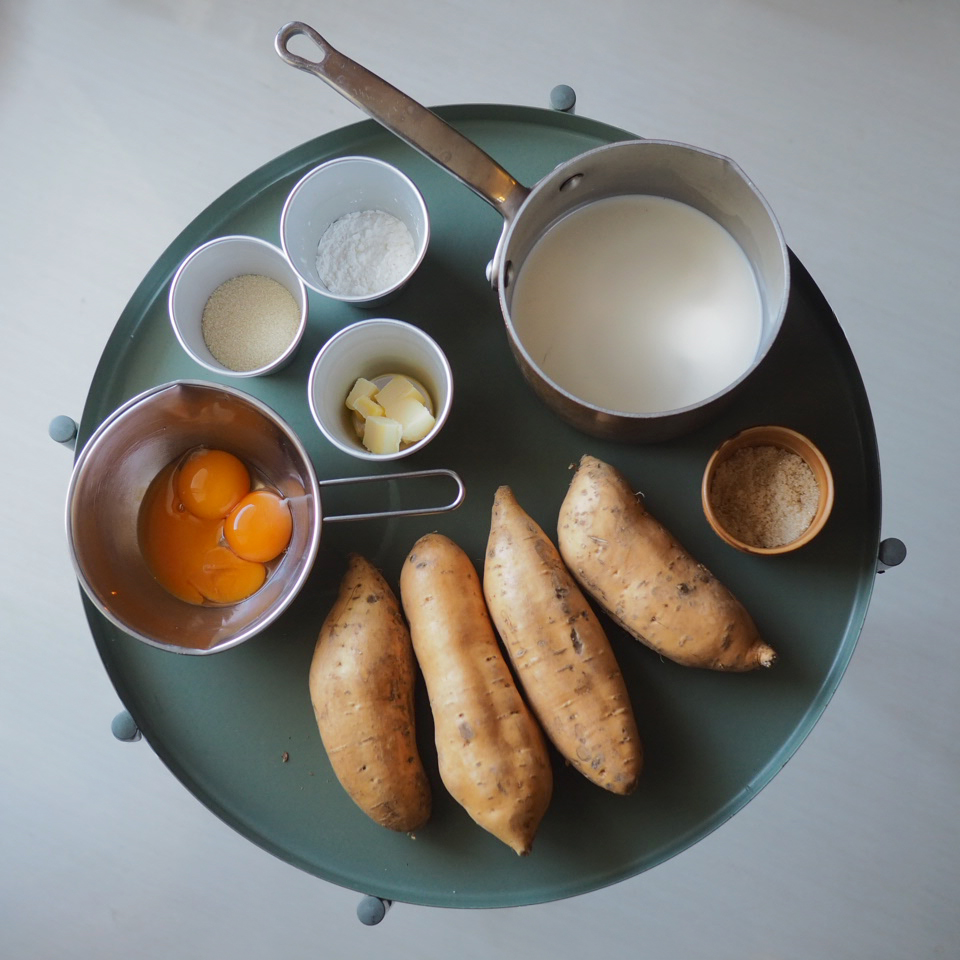這個甜點集合烤蕃薯、焦糖脆面和香甜吉士醬的三層滋味,在家中也能做到。要製作烤蕃薯,建議以160度低溫烘烤,烤1至1.5小時,蕃薯隨著長時間烤焗,會使其澱粉轉換成糖份,香甜度因而提升。等待烤製燴蕃薯的同時,可製作吉士醬。烹煮吉士醬至濃稠後,需要快手攪拌全個鍋底,令吉士醬不要在鍋邊燒焦或因過熱而結成粒狀。另外,吉士醬要確保熟透才離火,冷藏30分鐘,再以打蛋器重新打滑,就可以使用,比預拌粉弄出來的味道更佳,具奶香且入口即化。