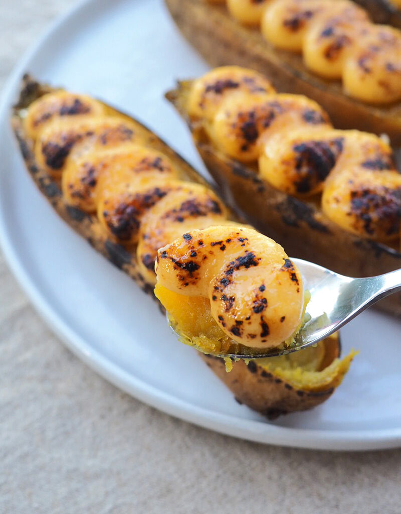 ⑥ 由於蕃薯已烤得非常軟糯,最佳食用一定是用匙羹敲破焦糖脆面和吉士,連蕃薯肉舀出來一起食用,一口咬下,附有焦糖脆面的香軟吉士醬,還有甜糯的蕃薯,非常合襯。