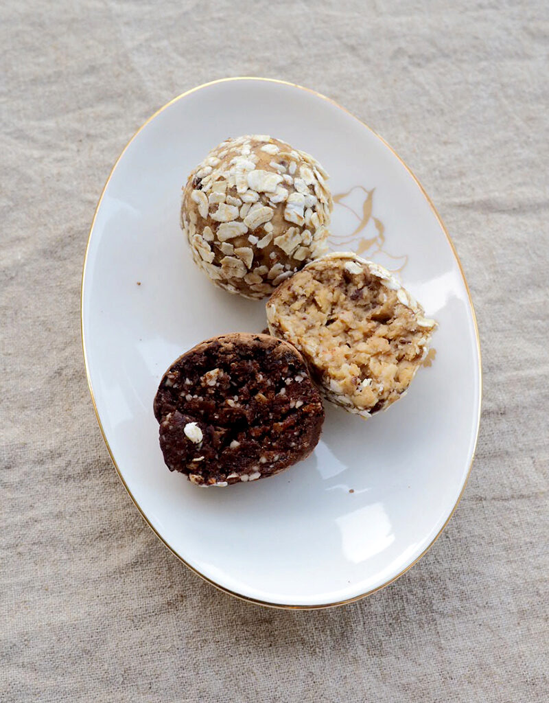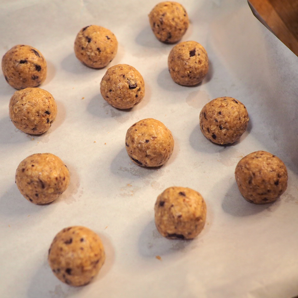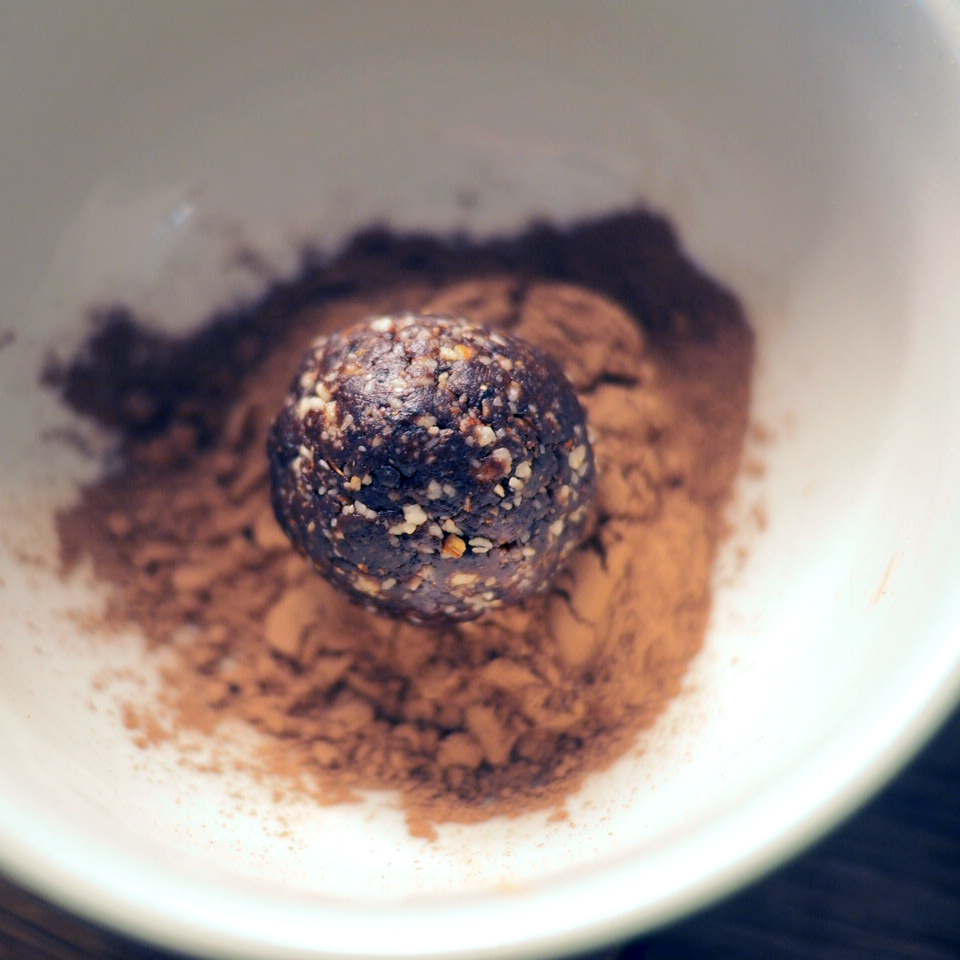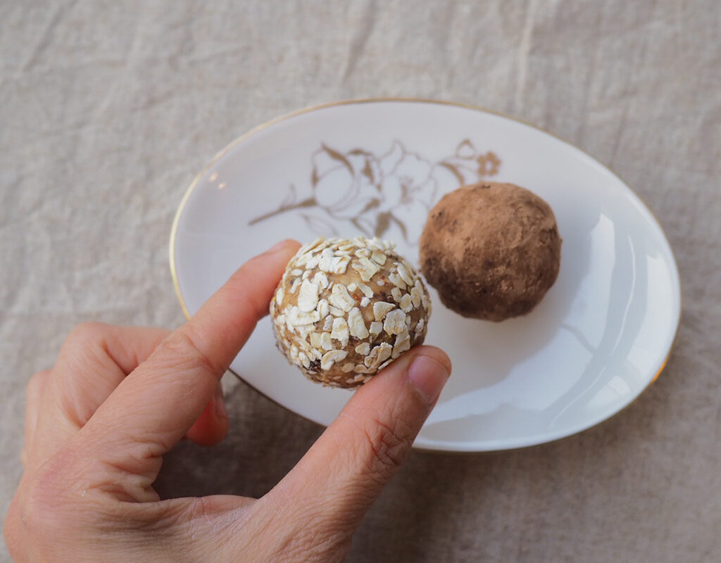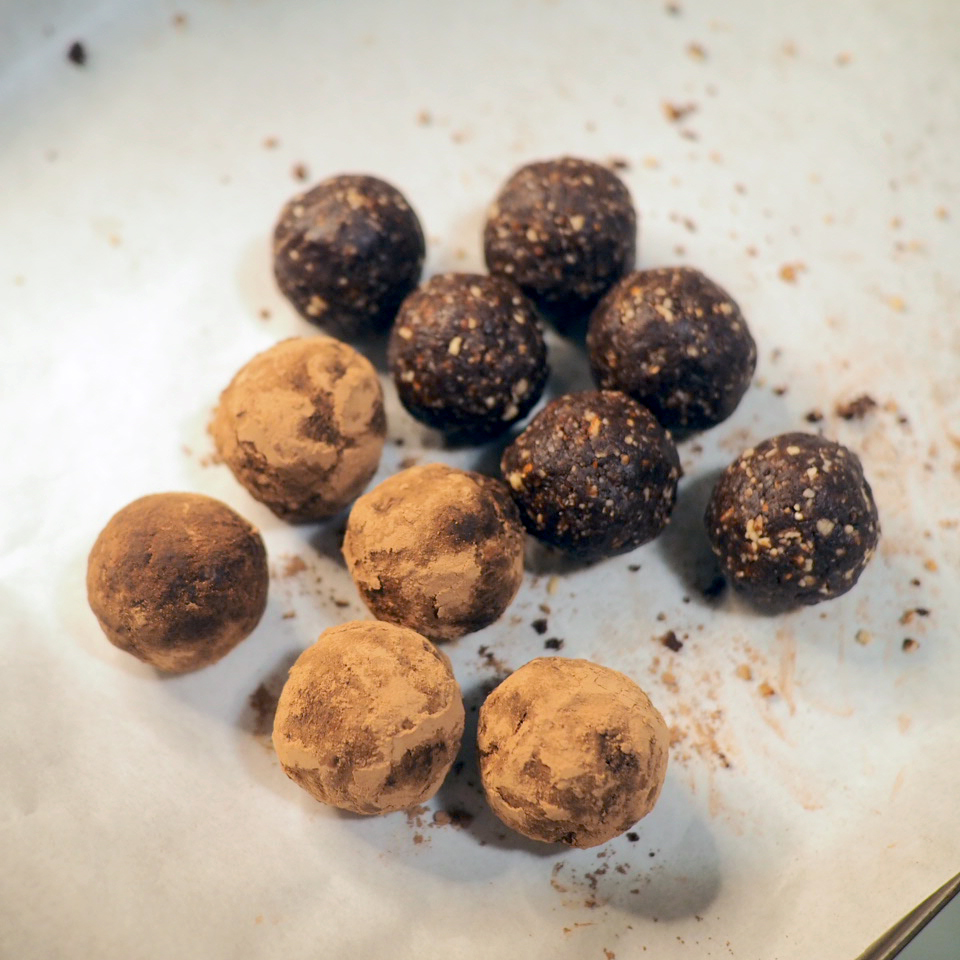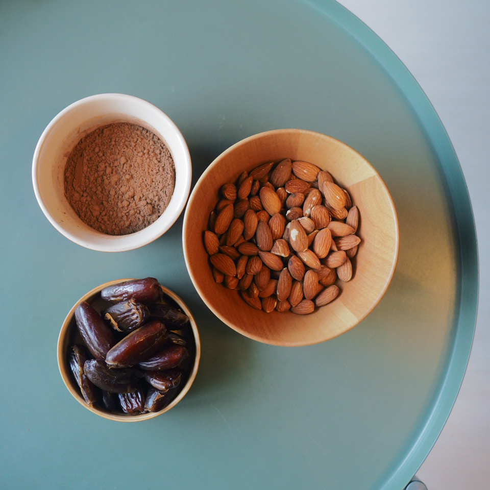 渣打馬拉松在即,跑手們正進入最後衝刺的備戰階段,想為跑手朋友們打打氣,自製能量球是個不錯的選擇。能量球,主要由天然食材如堅果、椰棗、燕麥、香蕉、乾果等組成,富含蛋白質,椰棗更有天然「能量膠」之稱,可於跑前吃一、兩粒墊墊胃,或跑後能提供能量補給,是健康美味的優質小吃。製作過程非常簡單,只要將所有材料混合均勻,不用烤焗,捏成球狀即可。今次食譜的兩款能量球,第一款椰棗堅果能量球只用上3種食材,全程以食物調理器打碎果仁、椰棗和可可粉即可,第二款香蕉燕麥能量球則用上4種食材,以一隻叉子壓扁熟香蕉,就能輕易將所有食材拌勻,不用機器也能做到。