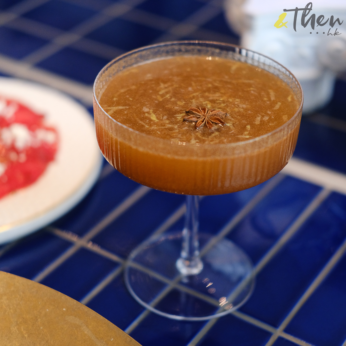 這杯「屯門六本木」以蘋果汁、檸檬汁、楓糖漿、肉桂粉、八角等材料調配而成。第一口似「檸檬可樂軟糖」,隨後香料的豐富層次慢慢散發。