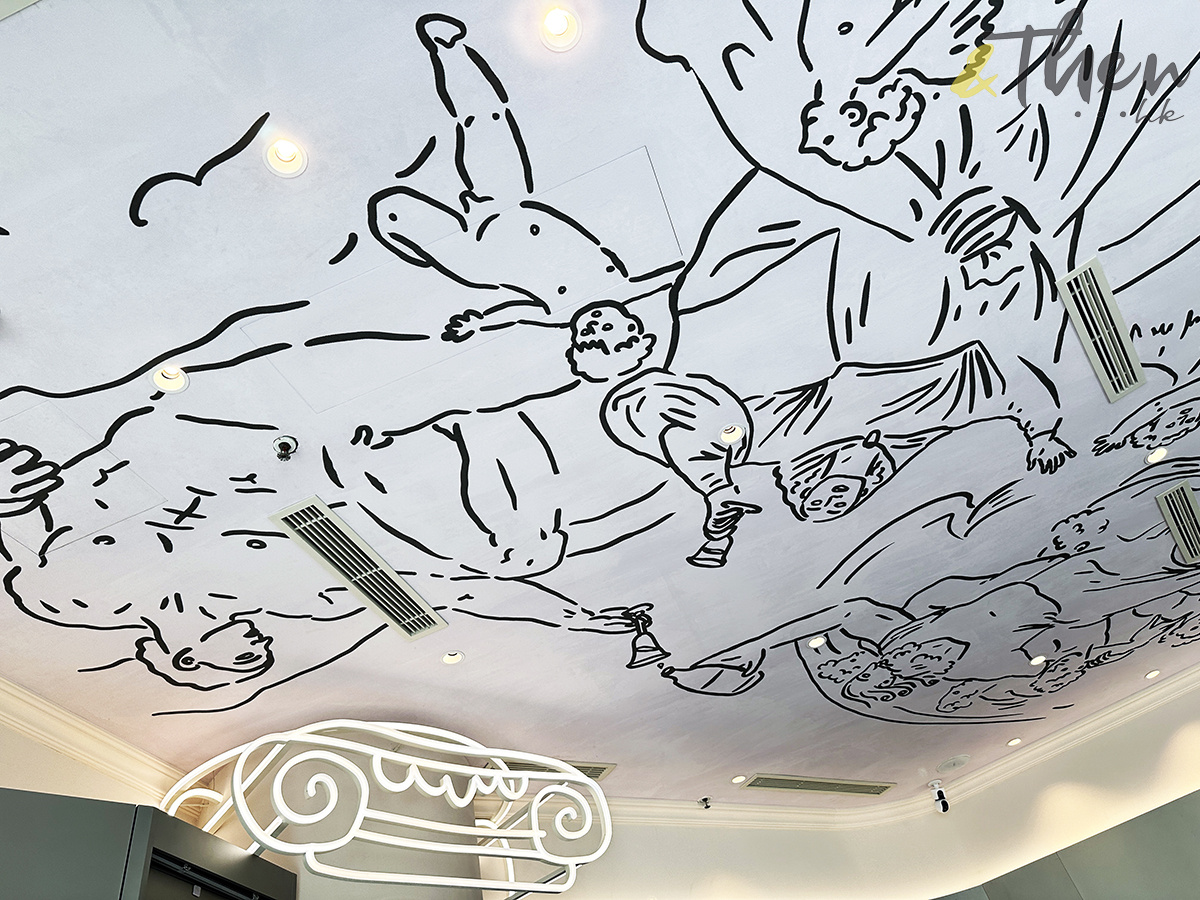 餐廳天花壁畫以經典畫作《創造亞當》為靈感,風格盞鬼玩味。