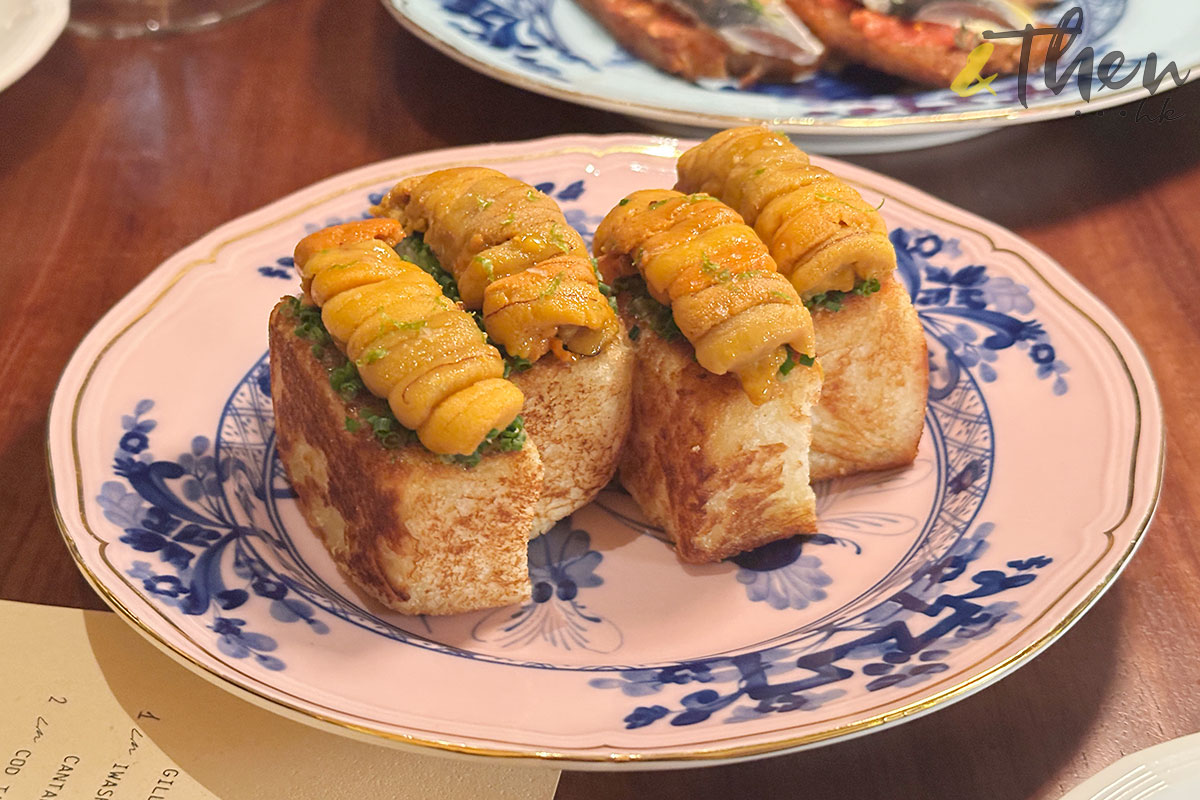 先上枱的小吃部份,沙甸魚刺生與北海道海膽多士都是鮮味出眾的開胃首選,前者將沙甸魚刺身配搭番茄基調,搭配蒜蓉蛋黃醬與海鯷魚提味,鮮味驚人;後者直接將北海道新鮮的海膽放在奶油麵包上,一口吃下盡是鮮甜滋味。