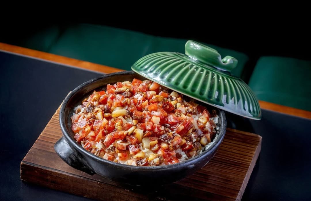 以六七十年代的香港為主題的「港嘢茶檔」,其「粒粒香臘味煲仔飯」是店舖經典,臘味材料源自店主合作多年的著名手工臘腸店,煲仔飯除了臘腸、膶腸、臘肉外更加添香菇、平衡油份的豆腐干、炭香土魷碎粒和店家的靈魂秘料。廚長更細心挑選密封度極高的瓦煲蓋,鎖住豬油和玫瑰露的香氣,煮好了還要像牛扒般給它rest 1分鐘,令飯焦形成。上桌後再把自家製豉油圍邊倒上,把飯香二次提升,客人揭蓋一刻,香氣直衝鼻腔,無意間就「鼻哥食先」。店舖還有「古法豉汁活鱔煲仔飯」,如果想一次過吃兩款則可叫「茶檔招牌煲仔飯」,就可兼得肥美的鱔魚和臘味。