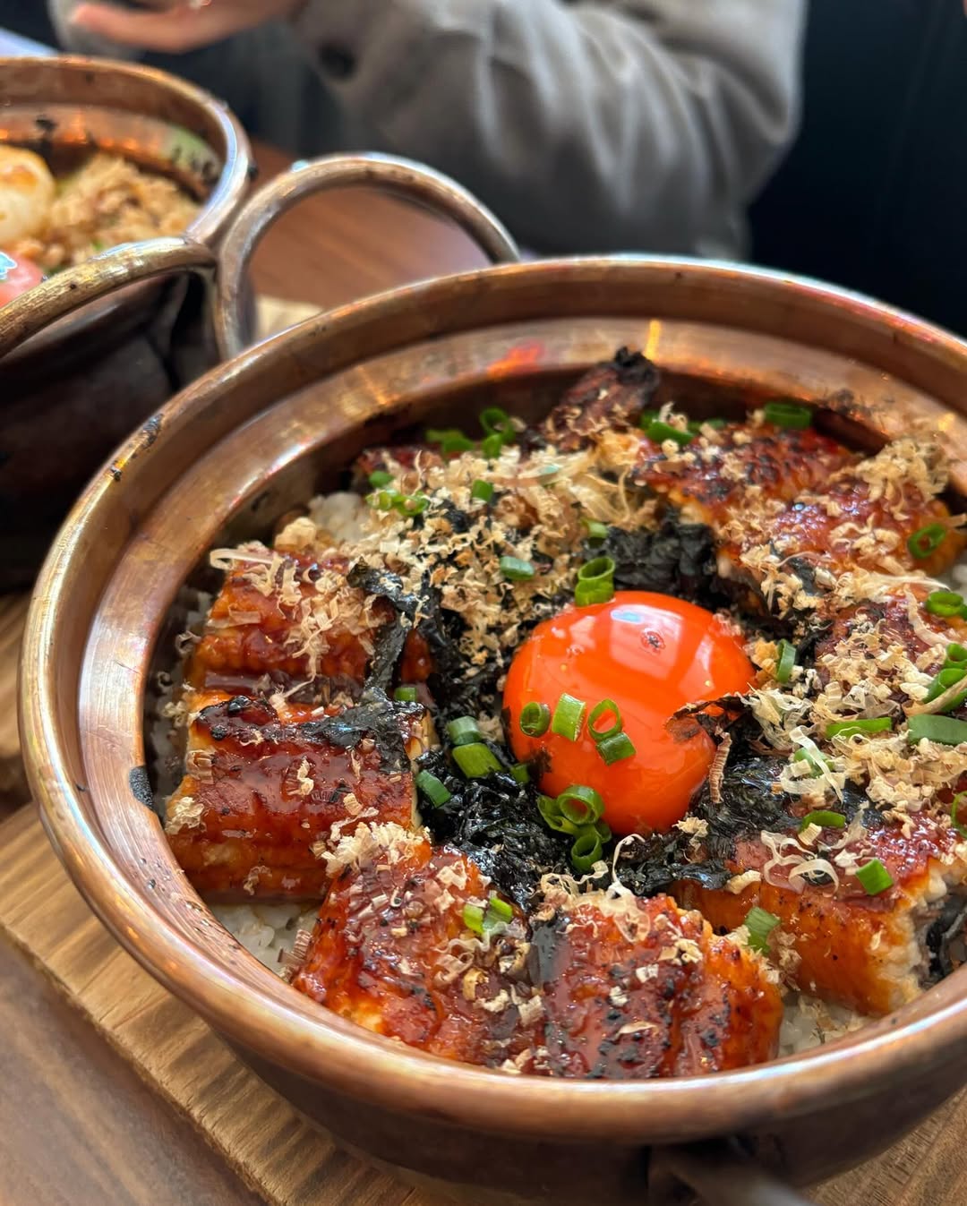 店舖最馳名的白鱔煲仔飯每日限量供應,白鱔新鮮大塊,使用的部位都是肥美嫩滑,經烹調過後,外皮香脆,肉質鮮甜。除了經典款,當然少不了滿滿大和風的「真.牛舌心煲仔飯」和「玉子蟹肉蟹柳蟹膏大混戰煲仔飯」。前者使用厚切牛舌,口感煙韌;後者蟹味十足,啖啖都有蟹膏蟹肉。喝酒人士可配搭威士忌或日本清酒chill住歎,不然點上一杯名為「黎明來到」的橙味特飲送飯也不錯。