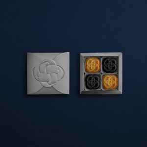 除了月餅造型之外,禮盒的包裝也是一大亮點:moono將重用去年設計,榮獲美國國際設計⼤獎(IDA Awards)的銀⾊「御結」包裝禮盒,並採⽤可循環再造物料的紙盒包裝,配以⽢蔗纖維製造托盤和可完全分解密封袋盛載⽉餅,健康、型格又環保,顛覆大家過對「月餅節」的想像!