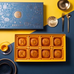 由前立法會議員譚文豪和前黨友林瑞華開設的茶餐廳「一日三餐」,首度與創辦人曾任職米芝蓮三星餐廳及置地文華東方酒店的人氣餅店Valérie合作,推出印有「H-O-M-E K-O-N-G」字樣的迷你月餅,為大家帶來「家港」的味道。餅餡中不含原隻蛋黃,改以鹹蛋黃蓉混入低糖白蓮蓉。啞藍餅盒上印有燙金圖案,設計低調而不失貴氣。