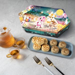 除了和「一日三餐」合作之外,Valérie自己也推出了6種口味的月餅;當中3種屬於創新流心系列,包括暢銷多年的流心奶黃、流心宇治抹茶,以及今年最新推出流心伯爵茶口味:曲奇餅皮裹著佛手柑和茶葉的清香,只需略為加熱,內餡便會如心太軟般流出。流心系列更特設以「香港小兔」、夜景和建築插畫為題的禮盒包裝,並將附送本地品牌「茶澤」的桂花烏龍及日月潭紅茶茶包。