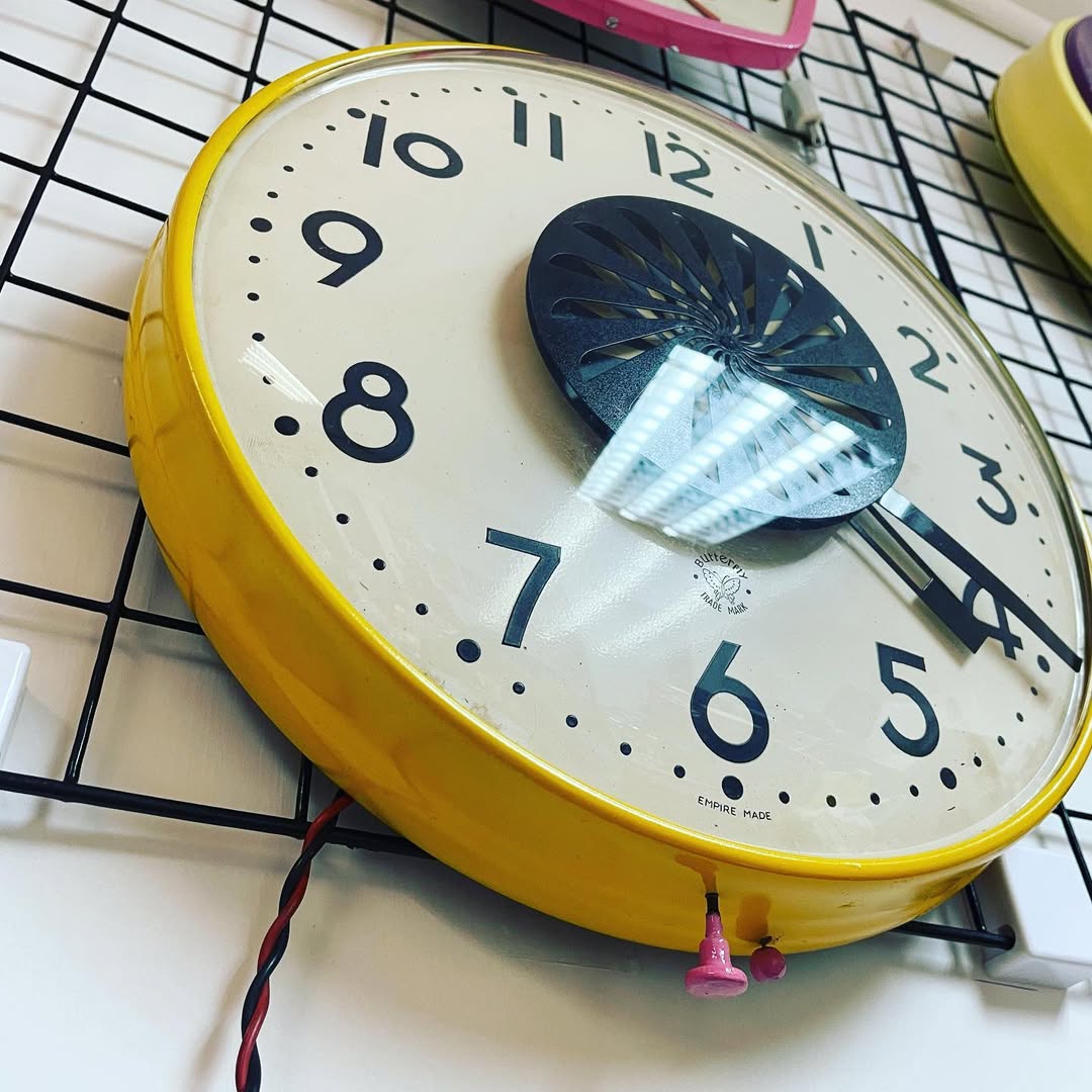 或許是吸引力法則,讓阿鋒遇上更多「可樂搖搖」的故事,也讓他對舊物背後的歷史越發著迷,還從中發現「香港製造」的前身「Empire made(帝國製造)」。他透過店裡的一個具有收藏價值、50年代生產,印著「Empire made」的塑膠鐘分享「香港製造」的由來。塑膠鐘由1935年成立的「立興有限公司」(坊間又稱蝴蝶牌)製造,品牌從「Empire made」時期到「Made in Hong Kong」時期也一直有出品「香港製造」。