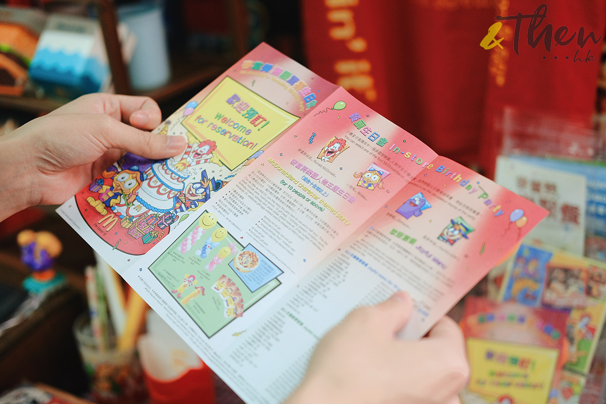 20年前的麥當勞生日會宣傳單紙,細心看會發現當年只須$120,就可以開10人內的生日會。