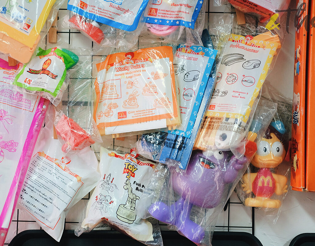 雖然規模不大,但展品從1976年的紙品廣告、歷年來的汽水杯、急口令餐紙、外賣紙袋,到第一件印有「i’m lovin’ it」標語的員工衫,以及各式各樣的開心樂園餐玩具,當中逾8成的展品也來自阿鋒和家人的珍藏,許多玩具甚至連包裝都未曾拆開!這場小型展覽不僅記載著麥記的50年變化,也是阿鋒的個人回憶展。看著各式各樣的玩具,讓人瞬間回想起舊時日以繼夜食麥記,儲齊一套玩具的快樂時光!