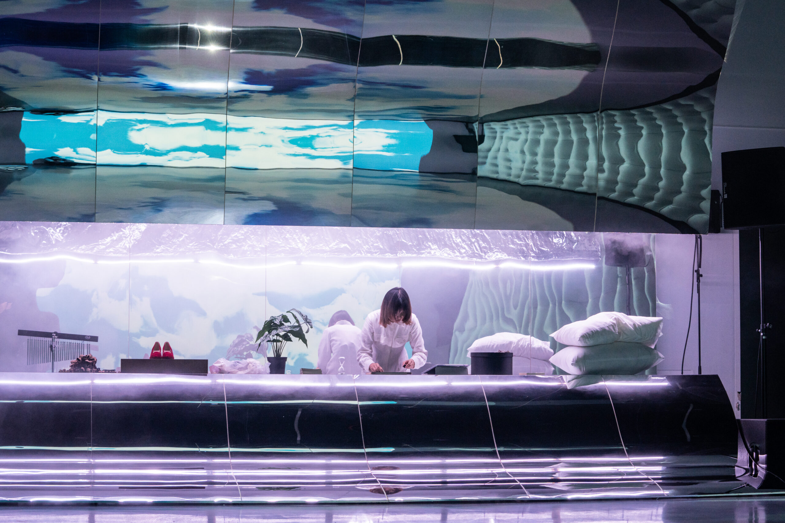 《飄飄然》去到現場音樂演奏區,觀眾有一刻會見到自己的top shot投映在牆上,有點像電影《兩生花》主角靈魂出竅在半空見到自己的軀體,Vanissa說:「我們構思時其中一個想和觀眾分享的是,萬物不停流動,你不要介意自己改變。知道不停變化的世界,但你不一定要react to。」