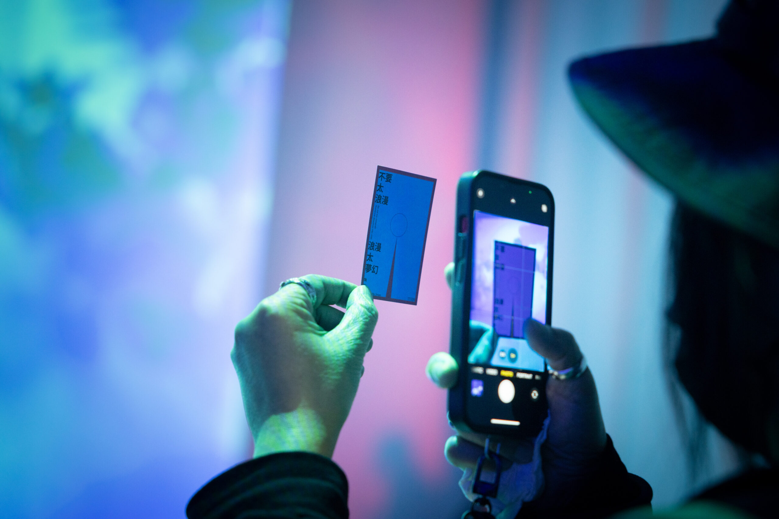 講到入夢,還要入夢到飄飄然,哪觀眾可否在現場入眠?GayBird笑言,現場是夠地方讓觀眾小睡,但這不是作品設定的一部份,而觀眾亦應該沒有時間睡覺,因為太多東西可以玩,「《飄飄然》的最大特色就是hybrid,除了有非常site-specific的裝置作品,還有很多慣稱沉浸式的投映,但我會稱之為全景式,盡用場地空間和大家的身體去創作,亦會採用生物數據轉化成影像,更有樂手即時與觀眾互動,與過往相比是行前了很多步。」GayBird直言,今次由場地、形式以至理念,都是野心之作,讓科技自然而然成為藝術創作的元素,而不是過度標榜的新事物,而更有趣又更能展示他壯志的是,「 今次讓觀眾有反思空間,但同時又很entertaining,是老少咸宜的節目。」現場所見,這個展覽不止可以打卡,更適合拍reels或stories,逛到最後還有免費扭蛋機給大家小驚喜。