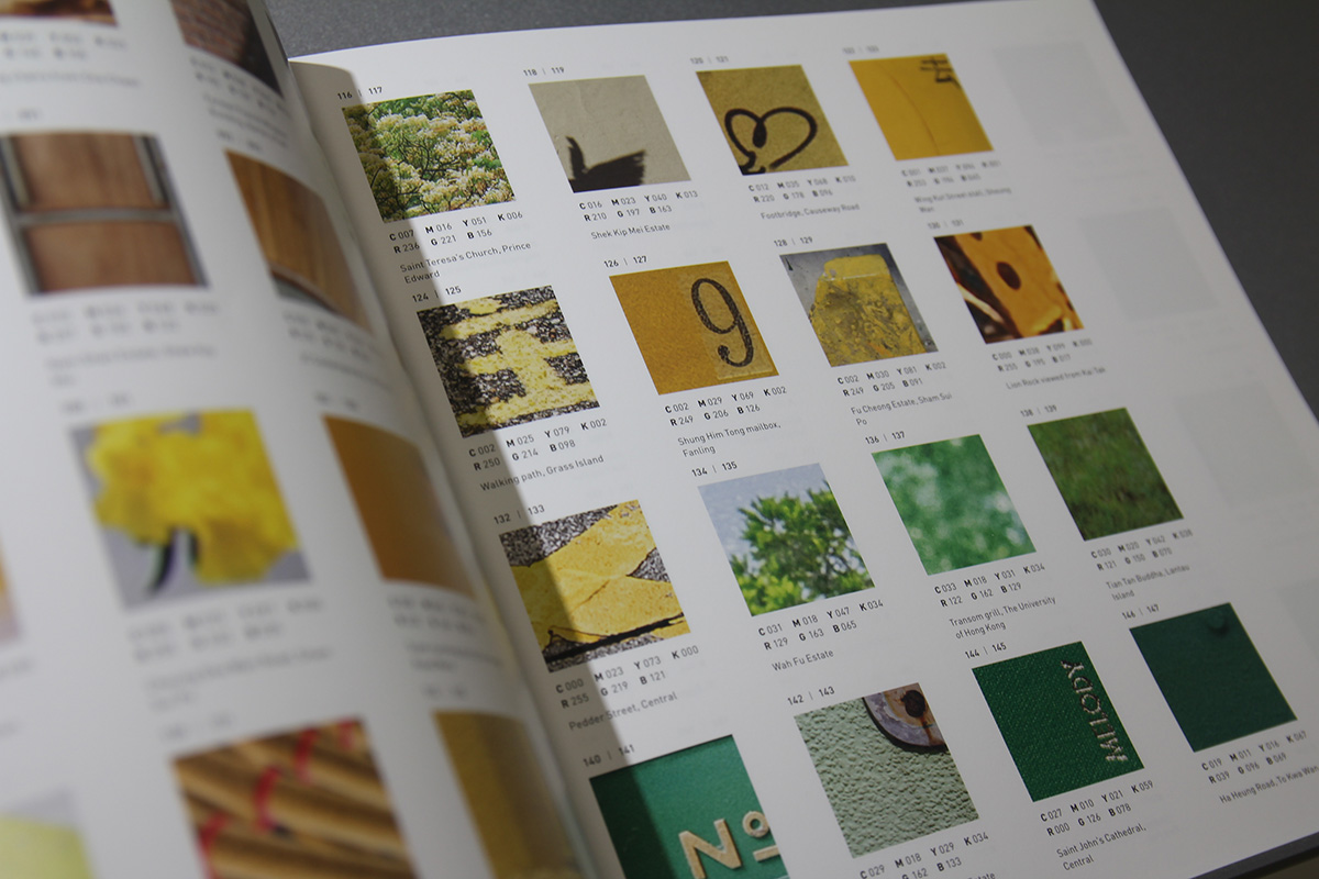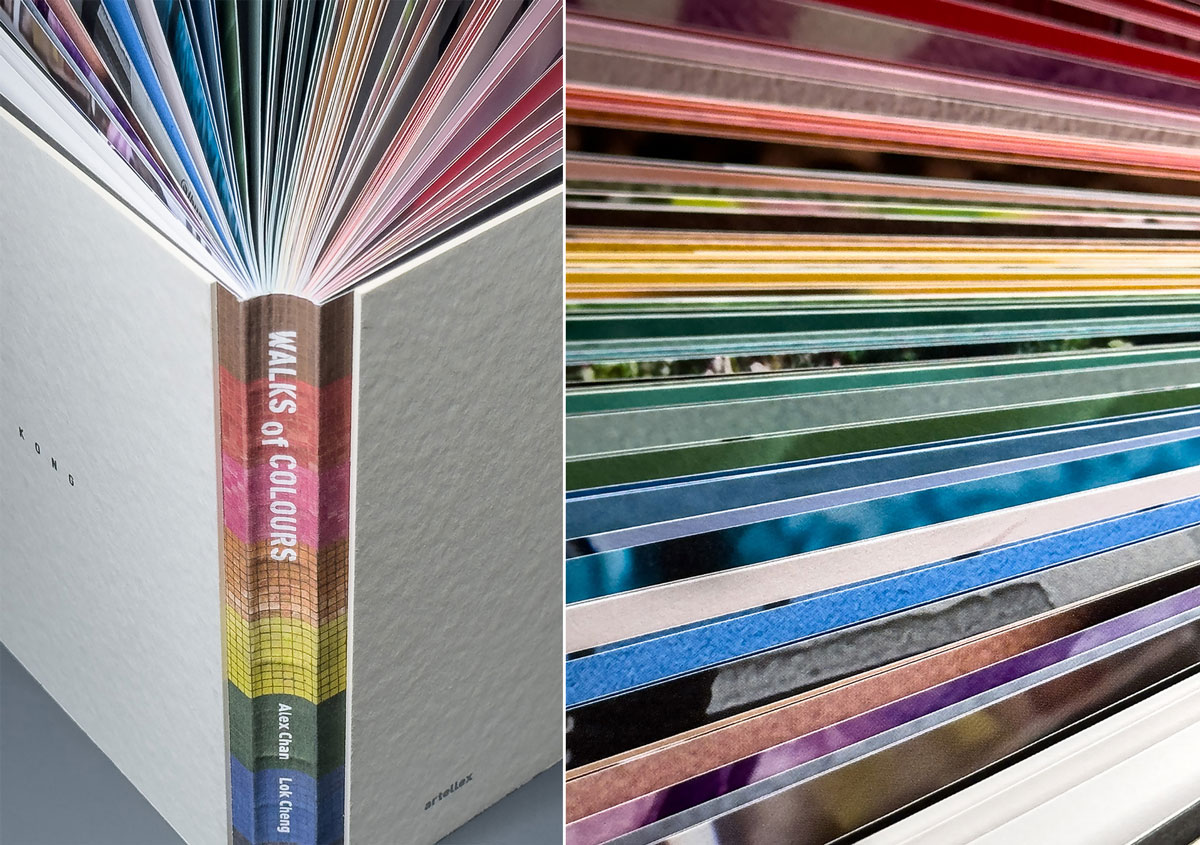 《Walks of Colours》攝影集共108張相,每張各以單一顏色為主調,若順序翻看全書,眼前便映入紅、橙、黃、綠、青、藍、紫整個色彩光譜。為尋找不同顏色,Alex和Lok分頭行事,走遍港九新界。被拍下的除了日常風景,如綠色行人隧道、市政大廈的紅色街市水牌,還有法定古蹟東蓮覺苑的彩繪玻璃窗、香港大學本部大樓的經典走廊。對於Alex,這些標誌建築帶來聯想,例如東蓮覺苑內部建築中西合璧,「代表了某個時期的香港,融合東西文化;香港大學則象徵著智慧,只是今日我城的智慧,已不同了。」