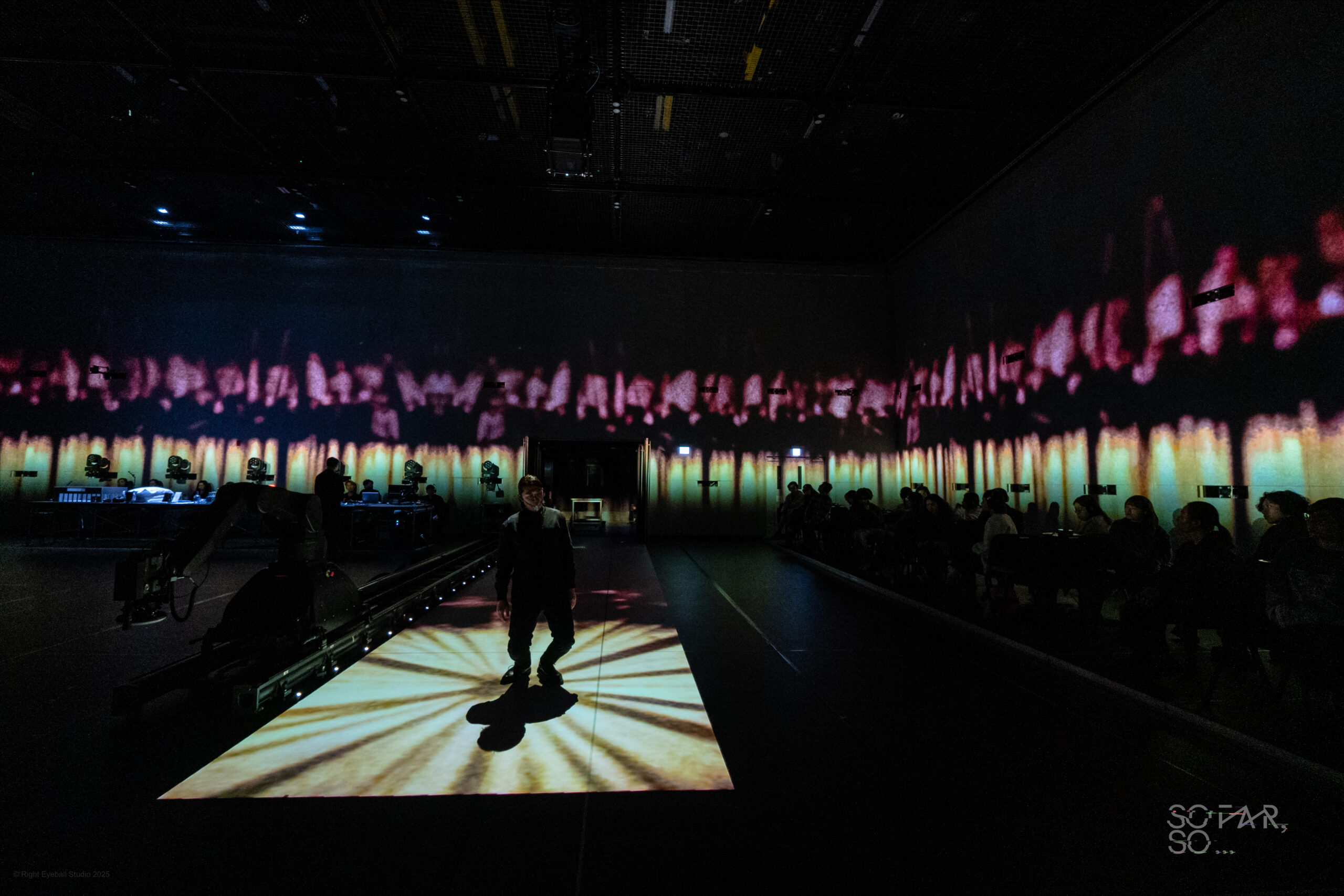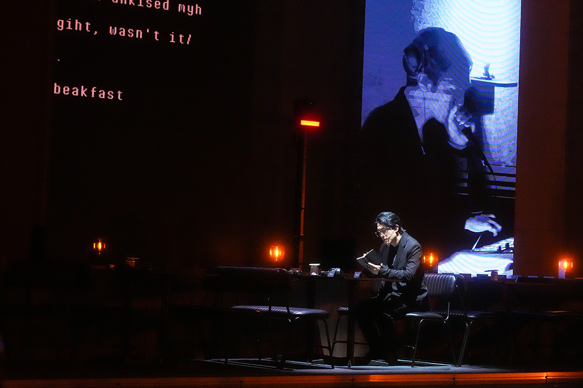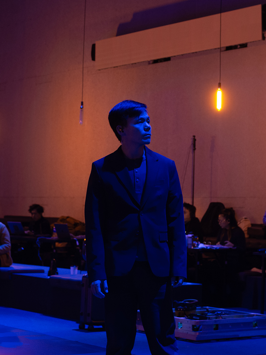 他說主演《Song From FAR Away || FAR Away From Song》,感覺很新鮮,尤其演出在兩個場館同步進行,還融合獨白形體、現場合唱、即時拍攝、多媒體裝置等不同元素。阿尺說:「作為演員,今次技術上有很多事情要應付和配合。例如我要擺放好攝影機,再使用電筒,用光影trigger AI程式,去生成影像即時播放。」
