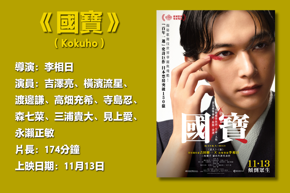 韓裔日籍導演李相日自1998年首齣導演作《青》開始,至今廿多年執導過多齣口碑之作,其中改編自日本芥川獎作家吉田修一的小說而拍成的《惡人》和《怒》,人物錯綜複雜的關係,帶來追看性之餘,也有著不少反思空間。今年李相日三度把吉田修一的作品影像化而拍成的《國寶》,既有著不少正評,更在日本本土票房創出佳績,上映五個月票房累積達166億日圓,有望挑戰真人電影史票房第一!