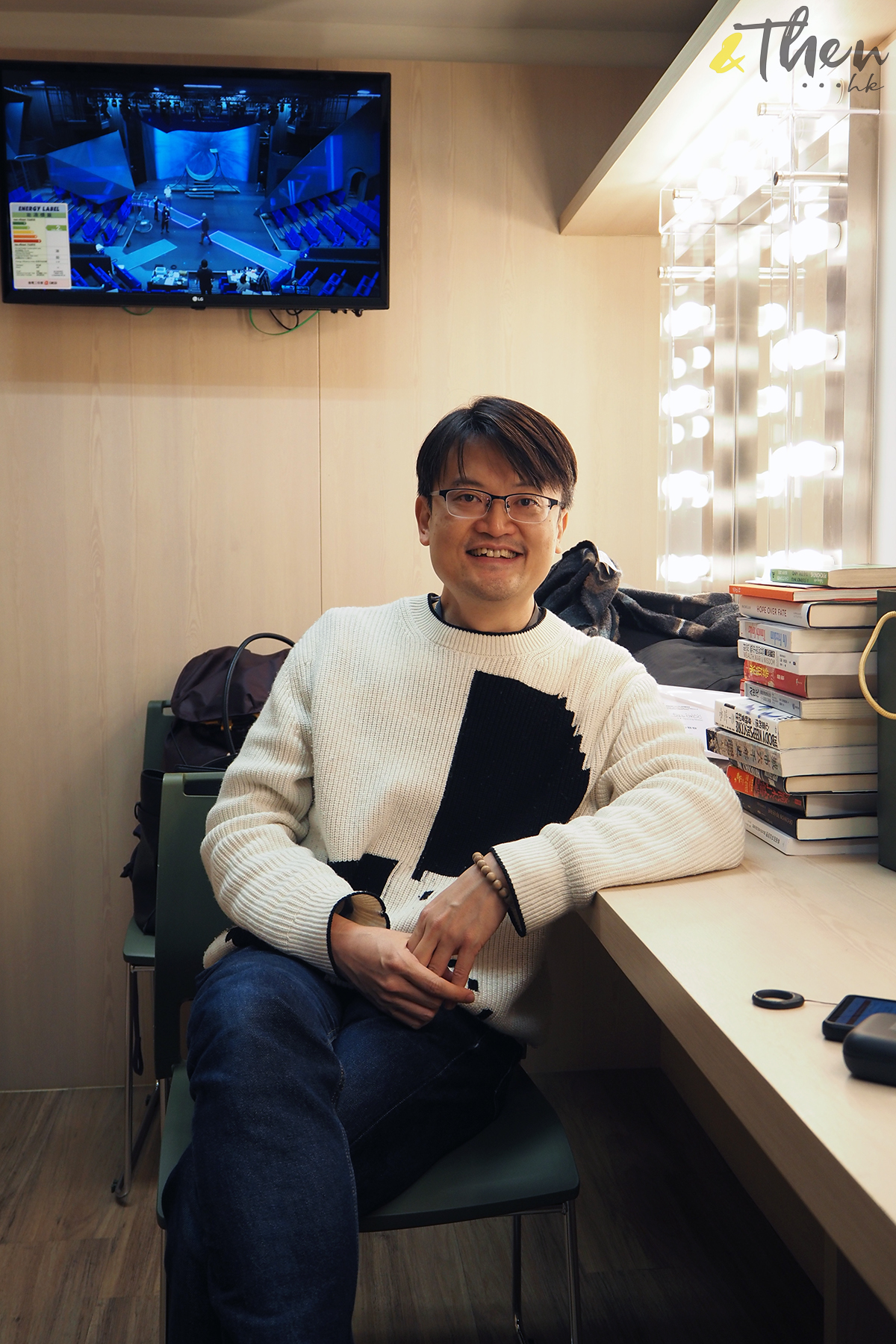 走進東九劇場,《宇宙到處的聲音》的排練如火如荼進行中,舞台上有很多投影面,但未見投影影像,身兼編、導的甄拔濤突然由舞台底下走上來,台底正在做一些試驗。他會合演員黃呈欣、梁浩邦,一起為「後人類旅程」最終章解密。
